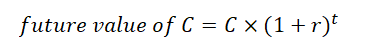 Anyone can invest his own money on the market to earn interest and, because of that earning possibility, having a dollar now is better than having a dollar in the future. When you decide to invest, you give up the possibility to spend the money you have now to spend more in the future. If you continue to invest also the money you earn your wealth will grow at a compound rate and, thanks to that, you achieve a compound interest. The expression future value (FV) indicates how much money you will have in the future if you invest a certain amount C for a number of periods t (generally years) at an interest rate r. The formula to calculate this future value is:
